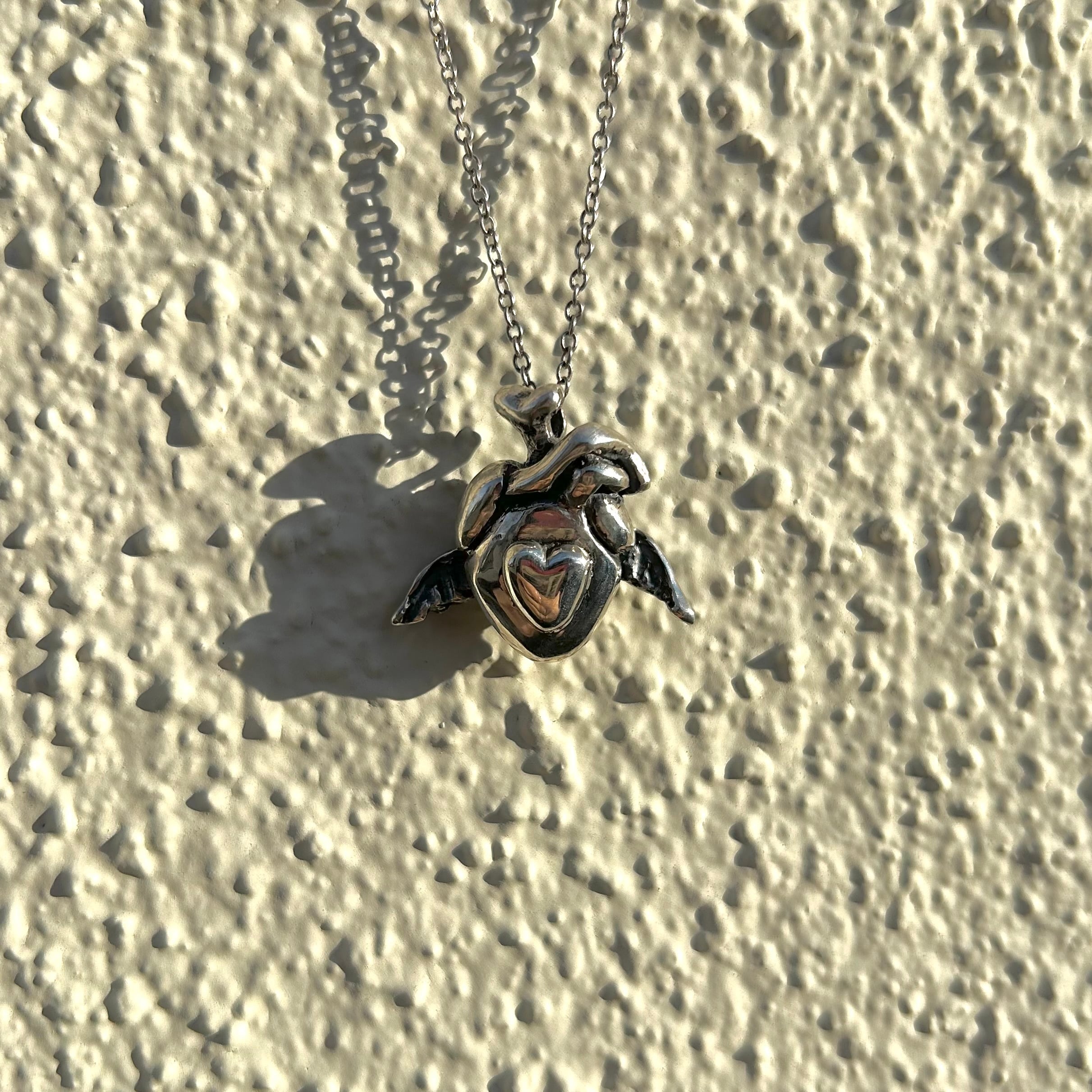 小さな翼を持ったハートのモチーフが印象的な、エンジェルネックレストップ。